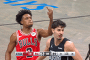 沃特森停球后找到外线的约基奇,还剩6秒持球硬解:投篮虚晃后左路突破吸引JJJ上前夹击,对抗顶飞阿尔达马后利用身体卡住JJJ,在两人之间的缝隙中击地找到空切接应的沃特森。约基奇在边路和约翰逊的“Touch Screen”配合,阅读到文威执行延误后迅速将球举起,精准找到顺下攻框的黄忠。约基奇肘区附近接球,作为策应高塔执行传切发牌任务:穆雷和琼斯的“Flare Slip”战术配合,琼斯抓马绍尔换防间隙抢
